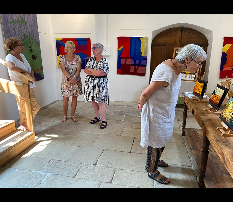 Visite de l’exposition d’Elisabeth Roux à Ailhon avec Dom, Martine, Renée et Roselyne